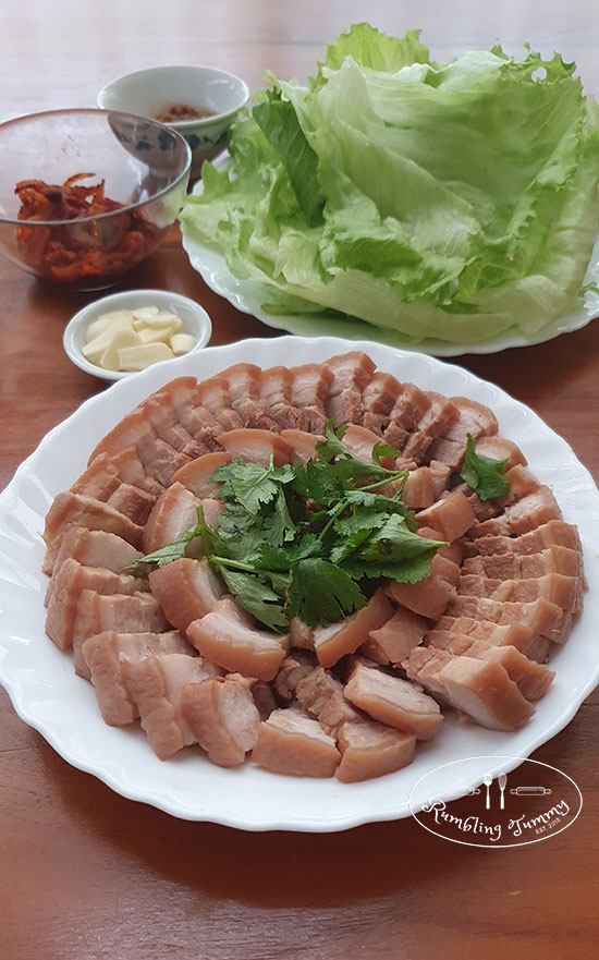 Today, I wanted to try making Bo-ssam 보쌈. For all the trips I make to Korea, strangely I never ate this dish. We only had BBQ pork belly. Actually, I missed one particular trip that we went with my hubby's friend. He took us to all the nice restaurants and experience so many different types of cuisine that is beside the norm that we have in Singapore. It was an egg opener and indeed a very memorable trip. So when friends told me Korean food is boring, I bet to defer.
